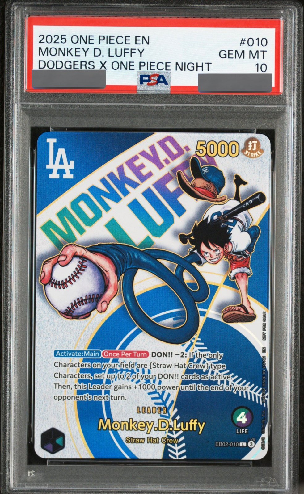 【PSA10鑑定済】モンキー・D・ルフィ【プロモ】《多色》 ※英語表記 [ドジャース版EB02-010【海外版】]