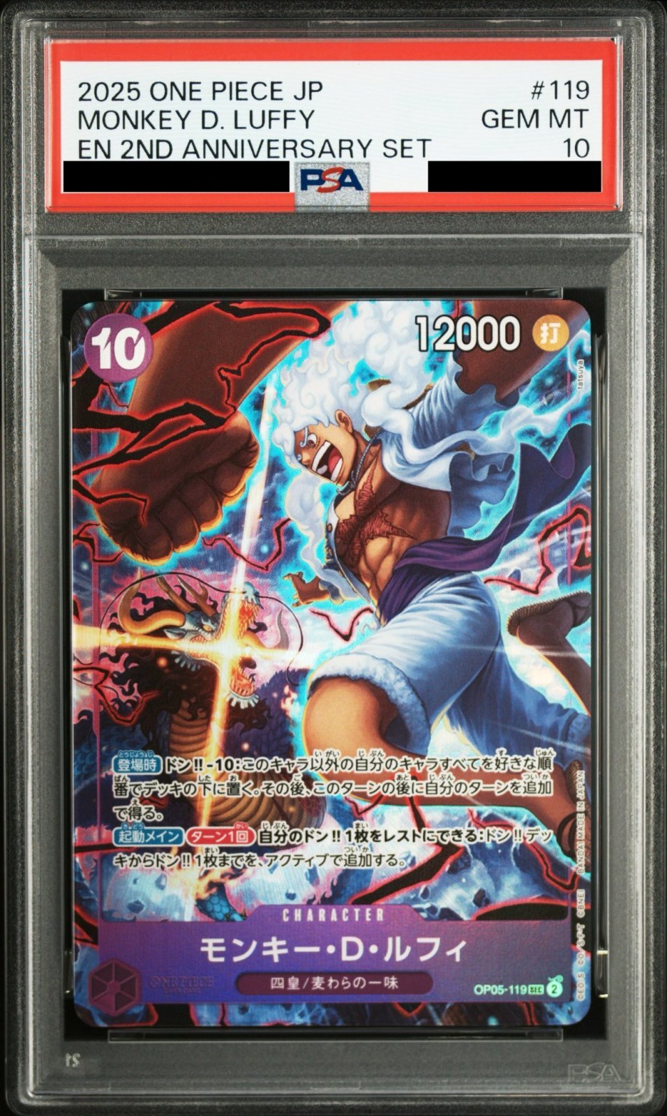 【PSA10鑑定済】モンキー・D・ルフィ【キャラクタープロモ】《紫》【英語イラスト版日本語仕様2nd ANNIVERSARY SET】 [英語イラスト版日本語仕様2nd ANNIVERSARY SET版OP05-119]
